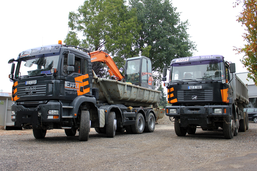 Wir verfügen über modernste Baumaschinen: Kipper, Bagger und Abroller gehören zu unserem hauseigenen Fuhrpark.